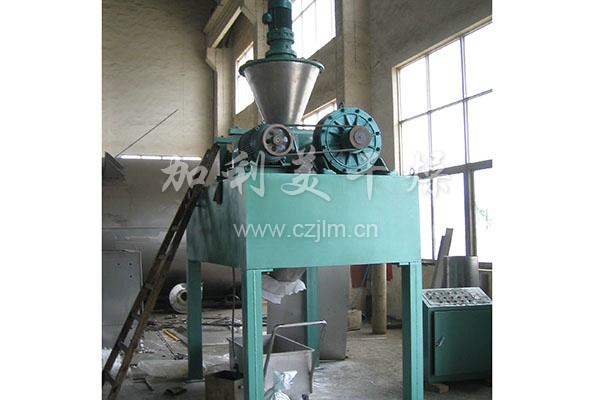 擠壓造粒的形式可以有對(duì)輥式和輪輾式兩種,對(duì)輥式擠壓是先壓成大塊,再破碎成顆粒,這樣裝置的能力大、顆粒強(qiáng)度高、能耗低,對(duì)輥擠壓在國(guó)外使用廣泛。輪輾式是在輥表面直接做成有穴槽型的形狀,一次擠成成型顆粒。產(chǎn)品強(qiáng)度較低有時(shí)需添加粘結(jié)劑。適合做有機(jī)肥和復(fù)合肥等顆粒肥料。
